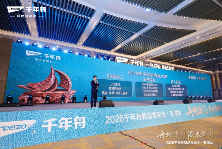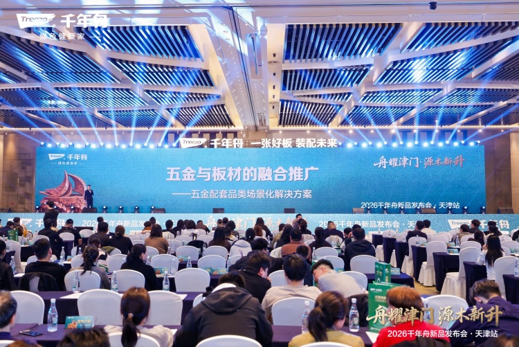 九河下梢,津沽潮涌,舟耀津门,源木新升。3月31日,海河之畔迎来了家居行业的一场高光盛事——2026千年舟新品发布会·天津站在万众期待中成功举办。在这座兼具历史底蕴与创新活力的“渤海明珠”,千年舟以“新”为刃,划破行业同质化竞争,发布一众科技美学新品,以“材、板、柜、居、筑”五位一体战略深度锚定华北市场,正式吹响了新一年指数级增长的冲锋号。