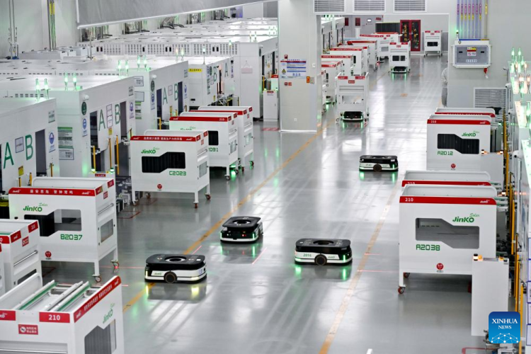 This photo taken on July 12, 2025 shows the "intelligent mega-factory" of Jinko Solar Co., Ltd. in Shangrao City, east China's Jiangxi Province. (Xinhua/Liu Jinhai)