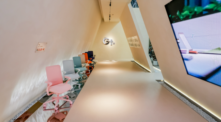 谷腾定位高端坐具品牌,依托成熟制造工艺与持续创新能力,在总裁空间领域实现底盘技术突破,并持续拓展居家办公、女性专属办公等细分场景。品牌拥有由全球八大设计公司组成的专属设计团队,产品多次斩获IF、红点等国际设计大奖。此次展会POLY系列在原有七款经典色系基础上,新增灵感源自宋代胭脂红兰花的“春野粉”,以低饱和度色彩呈现高端质感。谷腾事业部负责人朱正根介绍,品牌正从单一高端皮椅向整体空间解决方案转型,以上海为核心布局直营门店,同步推进线上电商与线下体验。