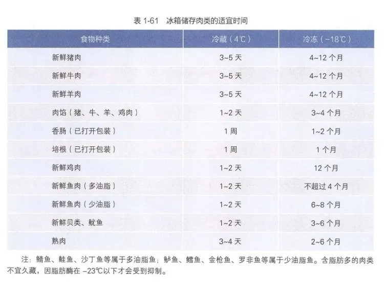 根据《中国居民膳食指南(2022)》,在保持-18℃的冷冻情况下,禽畜类冷冻肉的大致保质期为4~12个月,水产类冷冻肉的大致保质期为2~8个月。