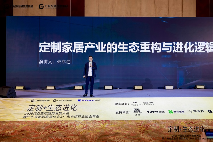 3月30日,以“定制+生态进化”为主题的2026行业生态趋势发展大会暨协会年会在广州香格里拉酒店盛大召开。本次大会汇聚了定制家居行业的顶尖专家和从业者以及产业链精英500余人,分享成功经验和方法论,共同探讨在绿色、健康、智能化趋势下,定制家居产业的生态重构与进化之路。