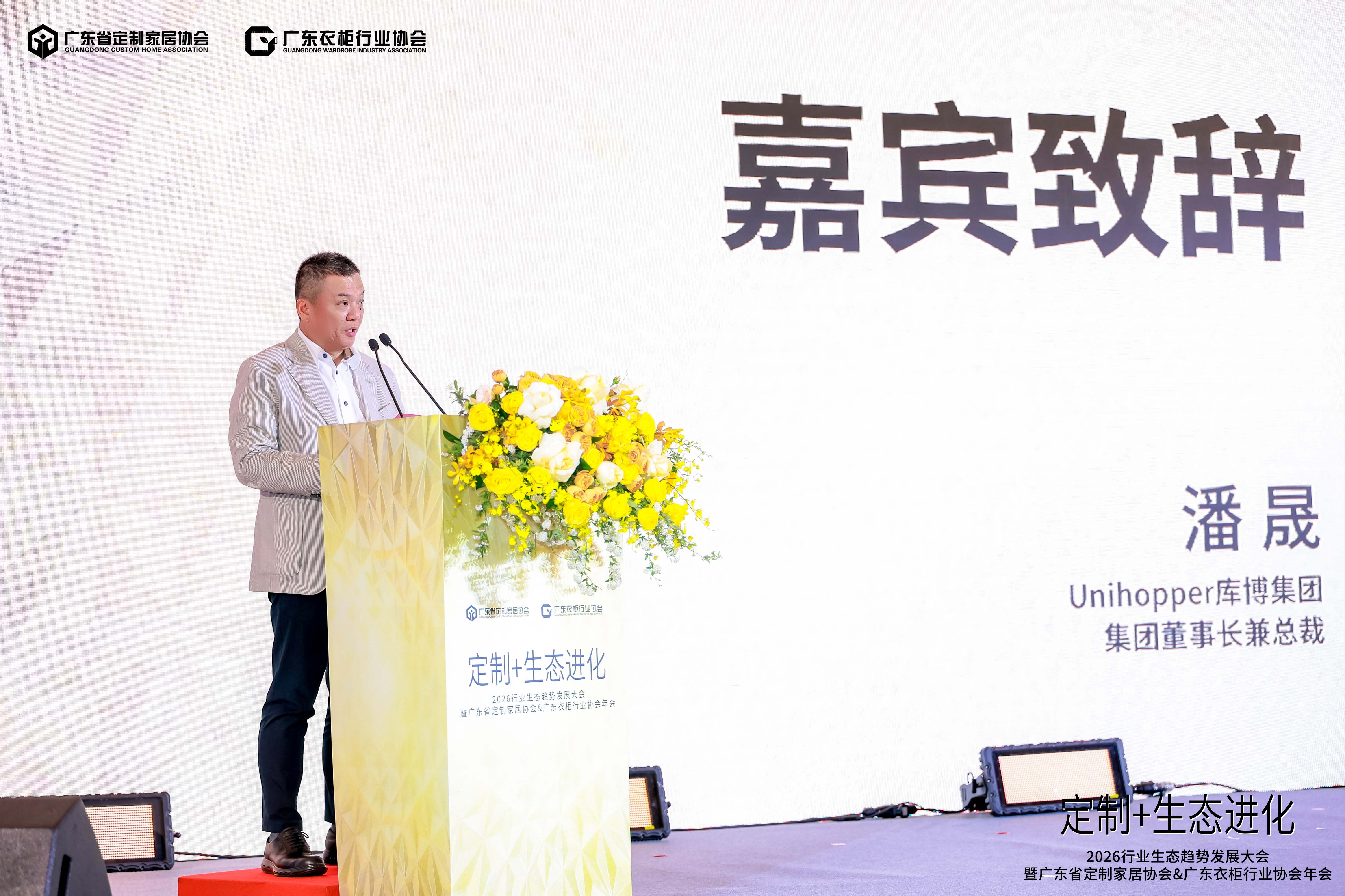 广东衣柜行业协会会长、百得胜家居董事长张健在致辞中提到,在“定制+生态进化”的发展趋势下,我们只有坚持不懈地努力,砥砺前行、与时俱进,共同创造定制家居行业百花齐放、和谐共融的有机生态,共同谱写行业枝繁叶茂的美好未来。