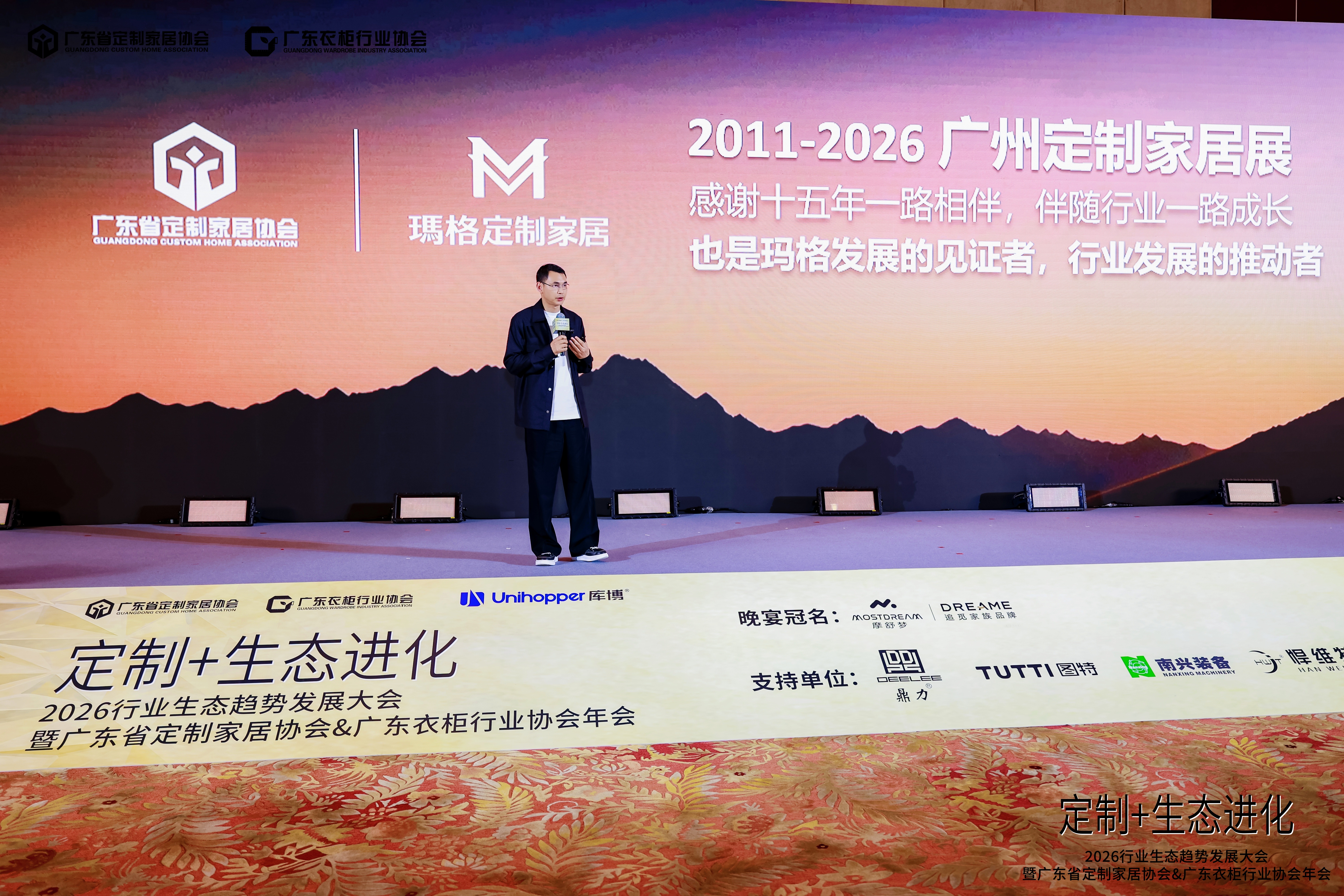 广东省定制家居协会/广东衣柜行业协会秘书长、博骏传媒创始人曾勇在分享中复盘了定制家居行业波澜壮阔的十年征程,并重磅发布2026“定制笃年”主题,深度诠释了行业在当前更需要“笃行致远”的初心,共同携手穿越变革周期。