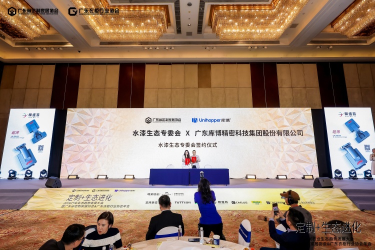 启动仪式之后,Unihopper库博集团董事长兼总裁潘晟与水漆生态专委会秘书长罗子勤,双方进行了水漆生态专委会签约仪式,这一重要时刻标志着双方在推动绿色家居产业链协同创新方面迈出了关键一步,为行业可持续发展注入了新动能。