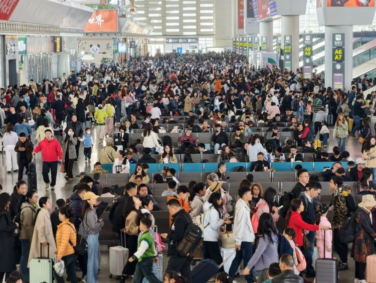 4月1日,成都东客站迎来中小学春假出行高峰。新华社发 (钟敏 摄)