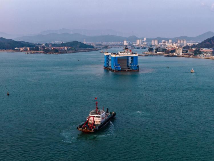 中交四航局“四航南海”号运输汕头港广澳港区三期工程首件巨型沉箱(摄:林浩楠)