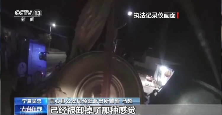 同心县公安局预旺派出所辅警 马超:下去之后他就把绳子绕到司机身上,缠好之后他就准备掉头往上走。他第一脚就踩到最底下手扶梯,然后双手往上搬。自己身体突然就没劲,一个仰背就躺到罐里面了。