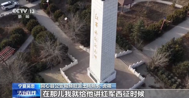 同心县公安局预旺派出所所长虎筱:在我们派出所后面200米处,有红军西征纪念碑,在那儿我就给他讲红军西征时候在预旺的故事,跟他讲我们预旺派出所,有我们的二级英模海小平。杨国林当时就表态,要以更加认真负责任的态度,做好派出所各方面的工作,办理好每一起案件,服务好每一个群众。