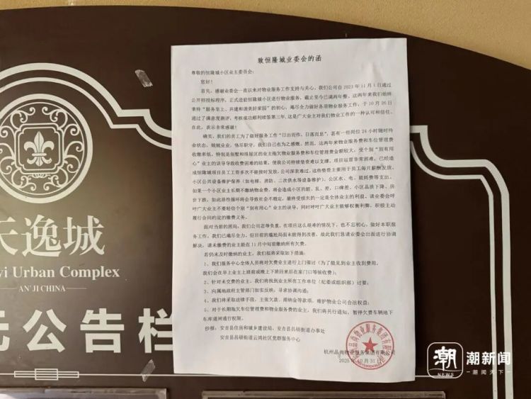 3月30日,湖州安吉恒隆城小区业主收到杭州品尚物业的告知函,后者宣布将于6月30日退出,比合同期限提前了4个月。