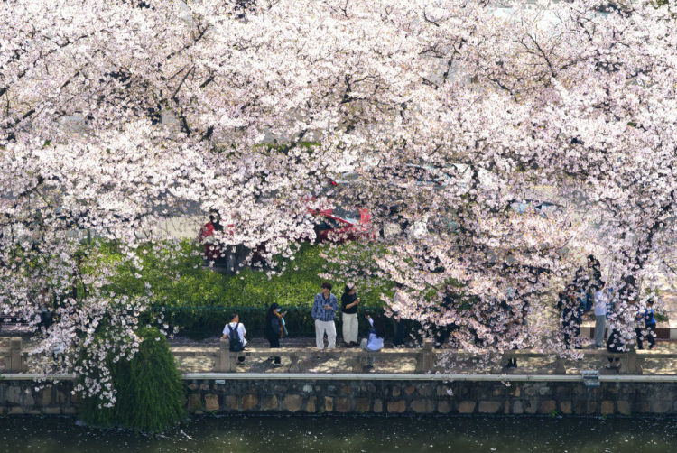 今年清明假期,北京赏花有了更多“水上视角”——北小河精心打造北京首条4.2公里樱花河流,沿岸栽植数千株樱花,搭配碧桃、海棠等春季花卉次第绽放,游客可乘船穿行于花海碧波之间。“坐在船上看樱花,偶有花瓣拂过脸颊,这种感觉太治愈了。”北京市民魏女士感慨道。