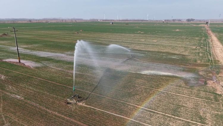东光县还积极推广小麦浅埋滴灌和无人喷灌技术,实现了小麦种植从大水漫灌到精量节灌的转变,相较于常规种植方式可节水节肥50%。种植户可通过手机App,实时调整地块洒水量,精准投放农药,让农业管理更高效。