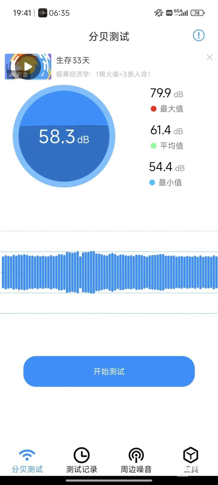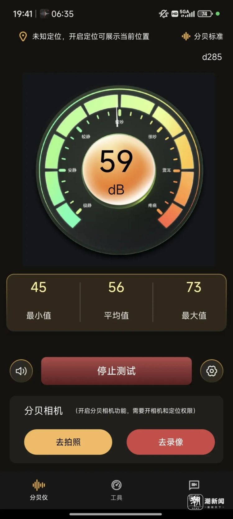 其中一款名为“精检分贝仪”的APP的测试结果显示,平均分贝为56分贝,最大值为73分;另外两款检测仪测试的平均值和最大值,分别为61.4分贝和79.9分贝,以及66.9分贝和73.5分贝,其平均值也均高于2类声环境功能区的昼间限值。