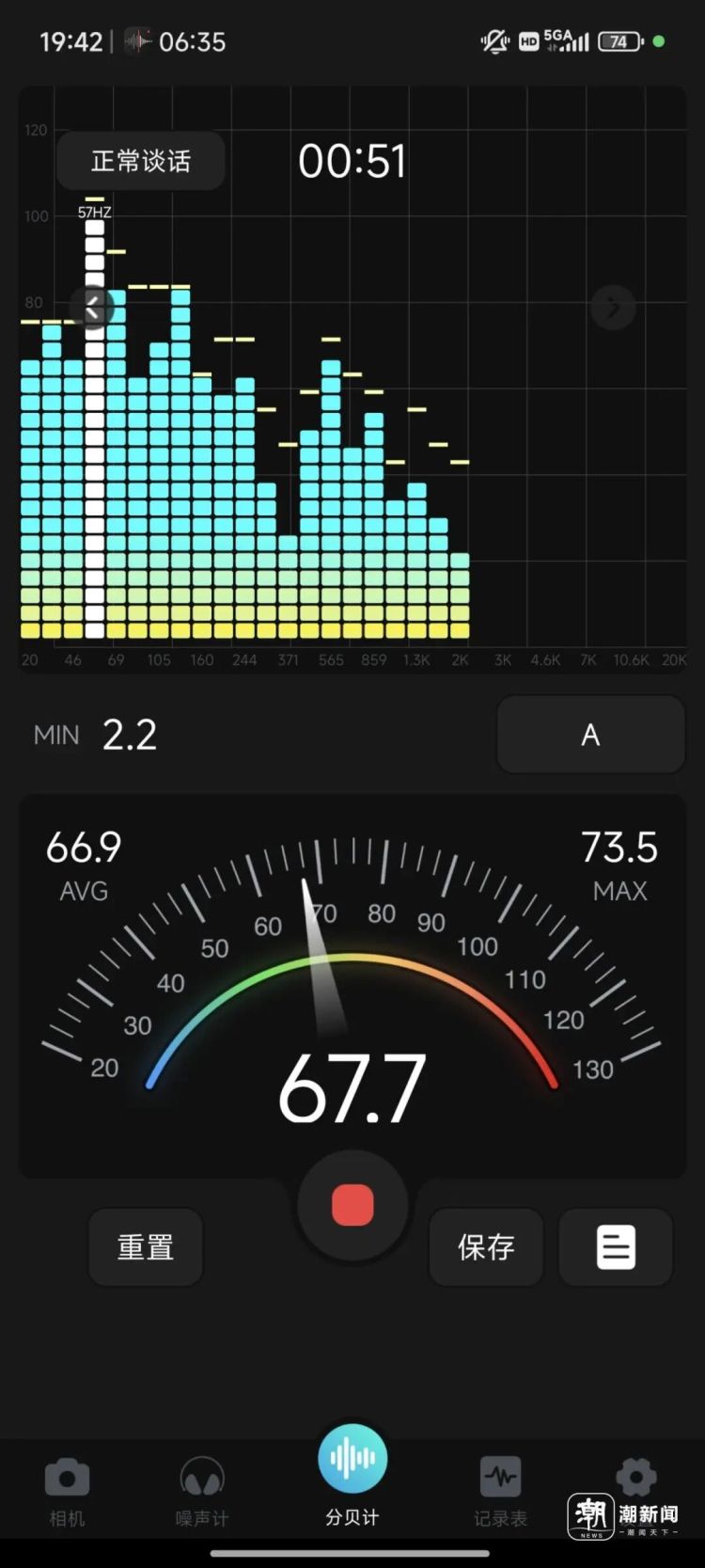 记者站在窗边,先后用三款软件进行了1分钟左右的测试,显示的数值各不相同,但在开窗状态下,最大音量均超过了4类环境功能区的昼间限制70分贝。