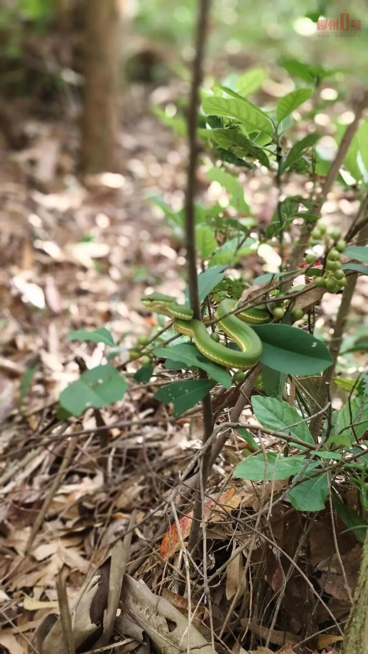 “几天前和家人到山里祭扫,看到树枝上有一条绿色的小蛇,我当时用手机拍了下来,后来才知道那是有毒的竹叶青。”4月9日,市民劳女士对记者说起了她遇到毒蛇的经历,所幸当时人与蛇之间相隔较远,没有发生危险。
