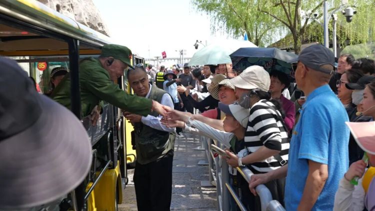 近日,是洛阳牡丹花会游客高峰期,龙门石窟研究院作出一个决定:破例允许几辆车进入景区核心区域,车上坐着28名平均年龄90多岁的抗美援朝老兵。