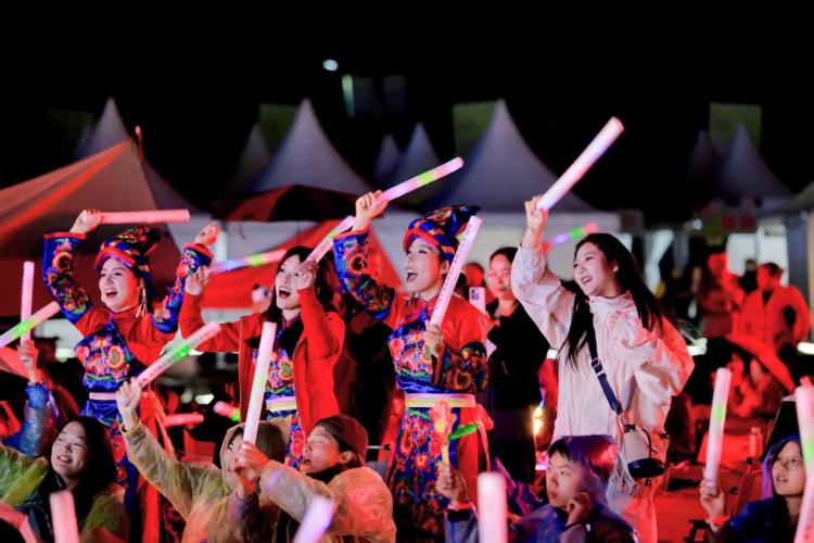 傍晚6时30分,主舞台灯光亮起,“春心荡漾·在草地撒个野”草坪音乐会正式开唱。本土乐队与民族歌手轮番登台,藏羌民族音乐的高亢、民谣的温暖、流行的动感、摇滚的激情在山谷间交织回荡,近千名观众挥舞荧光棒,将现场气氛推向最高潮。