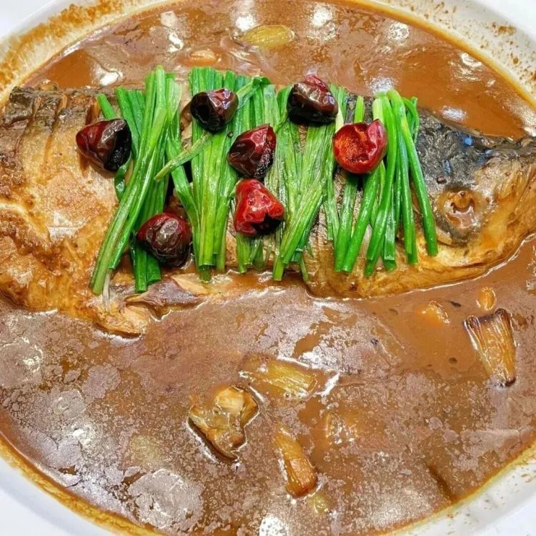 金海湖的特色菜之一,就是以水库鱼为食材做出来的侉炖鱼,金海湖鱼类品种繁多。随着四季时令变化侉炖鱼所用的鱼类品种也会改变,侉炖鱼需用柴火烧制数小时,肉质瓷实,口感细腻筋道,无土腥味,十分鲜美。