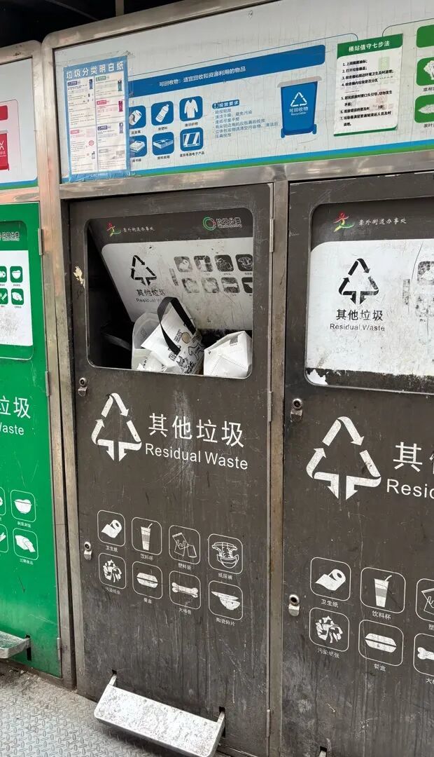 一位家住西城区的居民告诉记者,此前小区进行了老旧小区改造,原有普通垃圾桶站升级为箱房式垃圾桶。为了便于居民扔稍大垃圾,桶站前又配置了几个敞口桶——可想而知,一旦有了能直接“抛入”的桶,后方箱房式垃圾桶的设置意义与实际效果,便也大打折扣了。