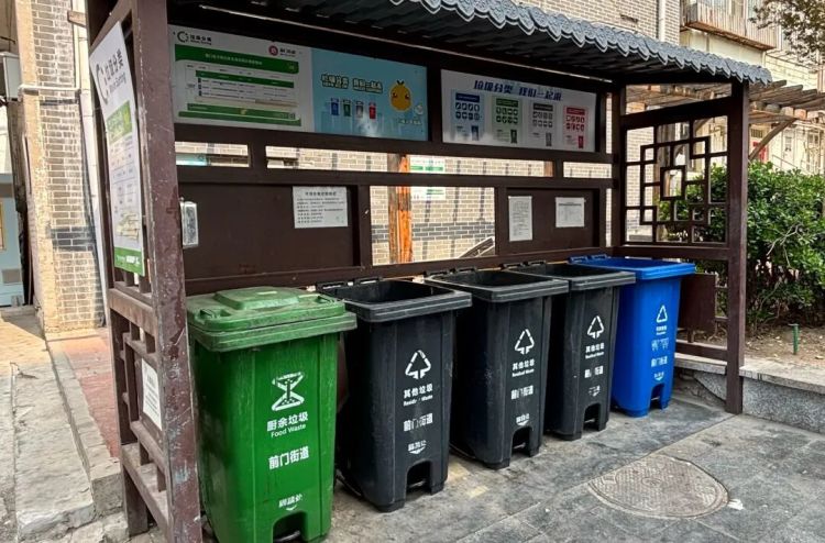除了传统塑料垃圾桶,如今整体性更强的箱房式垃圾桶站,在很多小区也十分常见。 它们通常被设计为一组铁皮柜的样式,下方有门,保洁人员可以将垃圾桶挪进挪出。上方则设置为内开式投放口,可以直接用手推开,或踩住铁皮柜下端的踏板控制开关。