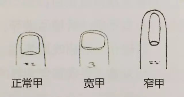 宽甲是甲面横径大,半月相应偏长,甲色和甲下色尚正常。宽甲易患甲状腺机能变异性疾病、生殖功能低下症等;特宽甲者,易患不孕症或无精虫不育症。中医提示肾精不足。注意补益肾精,平时可多吃核桃、黑豆、黑芝麻、花生、胡桃等食品。