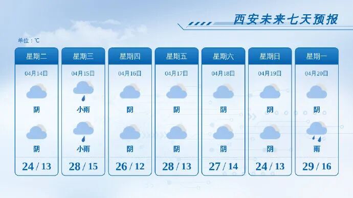 受高原槽东移影响,15日傍晚至夜间西安市有一次降水天气过程,量级以小雨为主,局地可能有雷暴。16日起以晴或多云天气为主,18-19日最高气温可升至30℃左右。另外,15-16日有6级左右阵风。