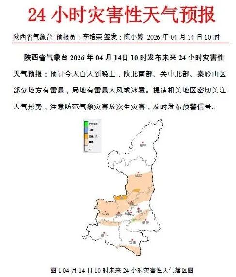 预计今天白天到晚上,陕北南部、关中北部、秦岭山区部分地方有雷暴,局地有雷暴大风或冰雹。提请相关地区密切关注天气形势,注意防范气象灾害及次生灾害,及时发布预警信号。