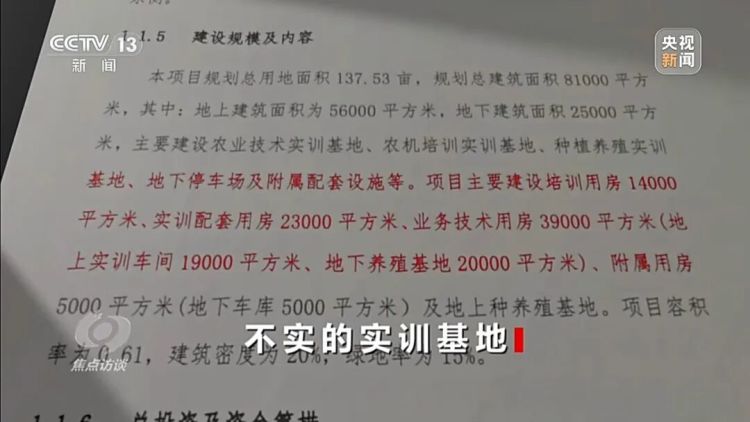 记者查阅项目备案文件,上面明确写着建设内容应为:农业技术、农机培训、种植养殖三大实训基地及相关配套。然而,在规划之初,这些实训基地及相关配套设施都换了名字,与备案文件上的截然不同。