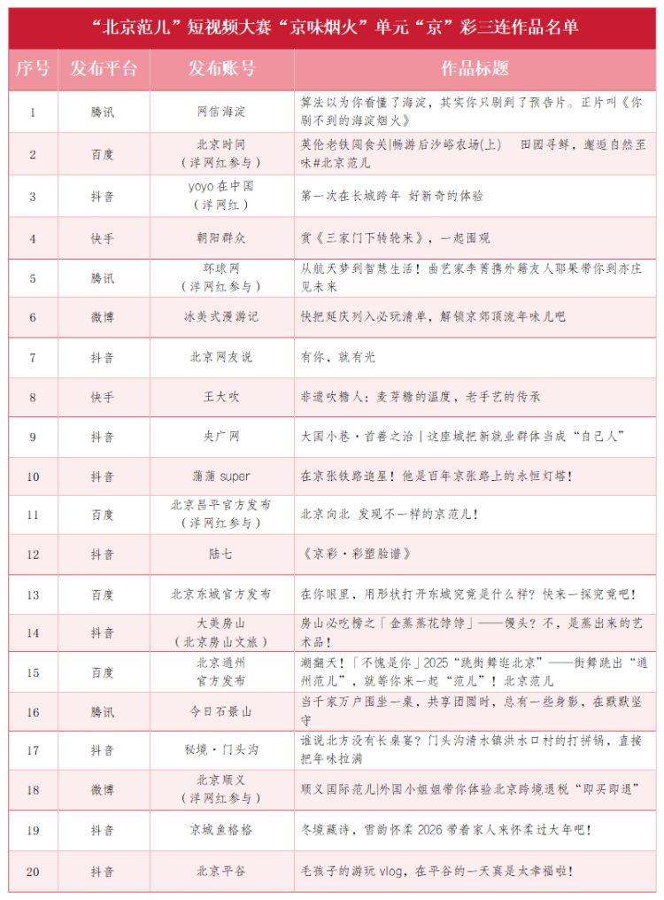 投稿方式:将视频源文件发送至邮箱 BDAycwl@163.com(邮件标题:潮动亦城投稿+姓名+联系方式),并同步在抖音、微博、快手、视频号等任一平台发布,添加话题 #潮动亦城#、#北京范儿#