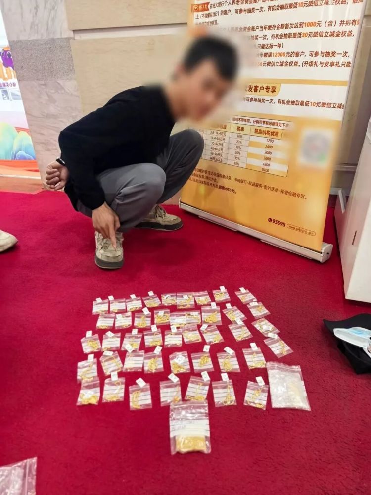 15时50分许,正在一家银行内办理业务的犯罪嫌疑人许某强还未反应过来,便被两地民警当场抓获。民警在其随身携带的背包内,当场缴获了近900克还没来得及销赃的被盗黄金。此时,距离黄先生报案仅过去4小时。