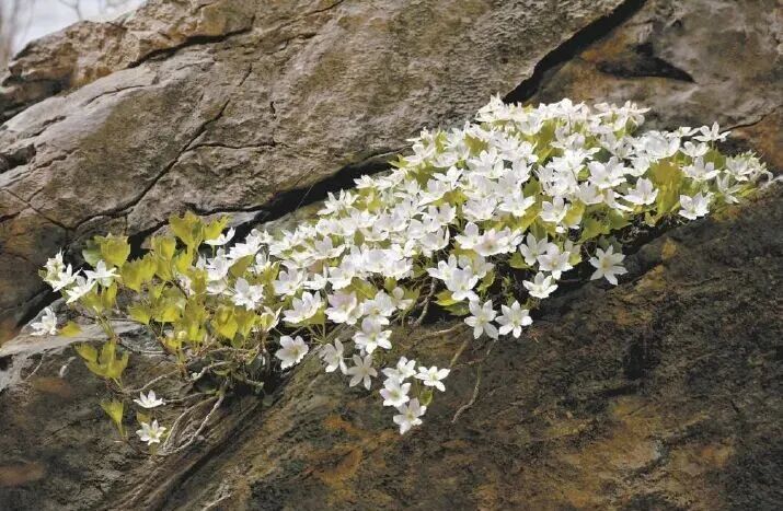 “槭叶铁线莲的根系,能在石头缝里扩展成很大一片。”李进宇告诉记者,为了研究崖花的习性,他们很希望对土壤的水分、温度等情况进行摸底,但石缝太过狭窄,因此始终没能成功。