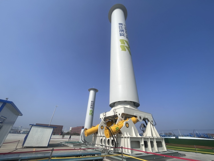 一进入大连庄河陆基试验基地,《环球时报》记者就看到一座高大的旋筒,白色筒身挺拔矗立,一体化设计平整光滑,金属质感在阳光下熠熠生辉,尽显工业力量。