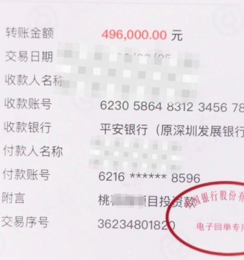 2022年2月至5月,短短四个月时间,黄先生分16笔,共计3200万元分别转入周某龙个人账户和公司账户,每一笔都清晰备注“桃某园项目款”,其中2600多万元直接进入周某龙私人账户。随后,双方完成股权变更,黄先生名下公司成为深圳伍洲置地有限公司股东,持股20.41%。