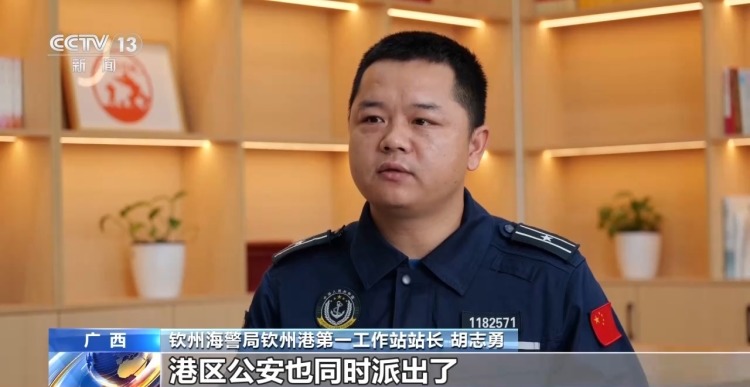 钦州海警局钦州港第一工作站站长 胡志勇:出动了我们的执法艇,港区公安也同时派出了执法艇和派出所的民警,对岸线同步进行了排查。