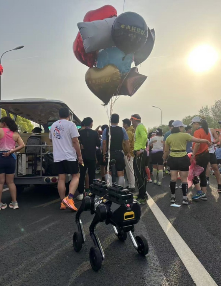 本末科技带来的全球首款整机模块具身智能机器人D1,以“关门兔”身份参与配速。马拉松赛事中,“关门兔”需在规定的关门时间内稳定完赛,对续航与运动控制要求极高。本末科技市场部负责人林忠彦介绍,过去人类配速员在跑动中往往还要兼顾参赛者受伤、中暑等突发情况,而D1接手关门控速后,赛场工作人员可腾出精力专注应急救护。“人机共跑、互补协作”的模式,在半程马拉松的赛道上得到了一次真实验证。