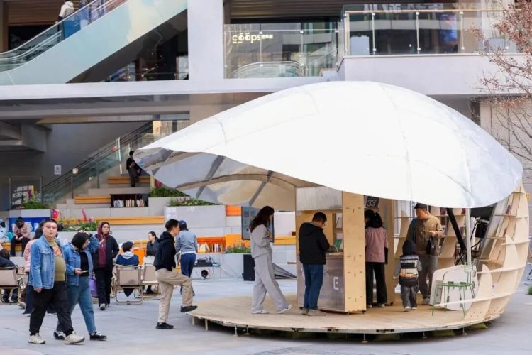 书屋采用自动开合设计,当装置开启时它向街区敞开,为市民提供开放的阅读空间,当装置合拢时书屋形成一个安静、独立的阅读环境,书架与阅读空间自然融合。除“贝壳书屋”外,街区还设置了声音互动装置、阅读播客空间以及多处艺术展亭,大家在行走过程中可以通过“听、看、读”等多种方式,参与其中。活动期间,中粮·祥云小镇还举办多场主题对谈,诗人里所、余秀华等文化名人齐聚一堂。