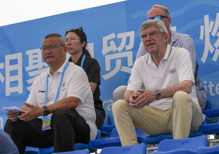 国际奥委会终身名誉主席巴赫则现身男子沙滩排球比赛观众席,如今正享受“退休生活”的他观看了中国队与斯里兰卡队的下半场比赛,也在上午关注了其他一些项目的角逐。