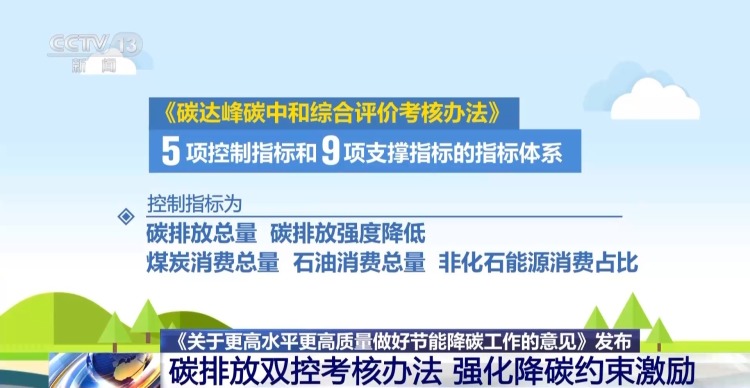 就在《关于更高水平更高质量做好节能降碳工作的意见》发布后不久,《碳达峰碳中和综合评价考核办法》也对外公布,这也让碳排放双控有了目标考核的“指挥棒”。