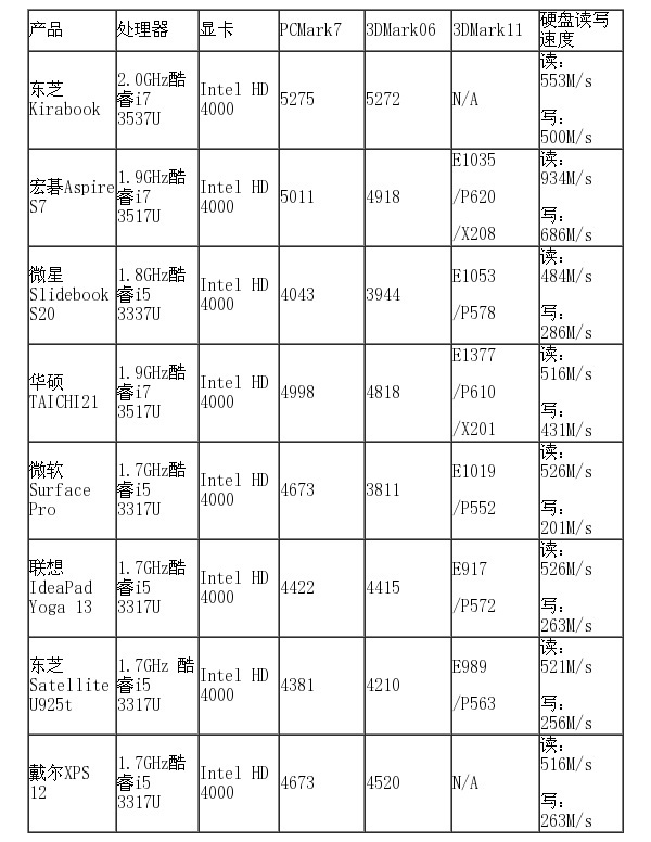 从整体的跑分成绩上来看,Kirabook得益与其采用的2.0GHz酷睿i7 3537U处理器,所有的成绩都处于领先的位置,不过过大的噪音非常几乎让人难以忍受。