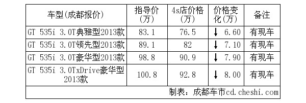 【网上车市成都讯】据宝马4S店销售人员表示:宝马5系GT最高优惠8万元,少量现车。具体价格信息见下表: