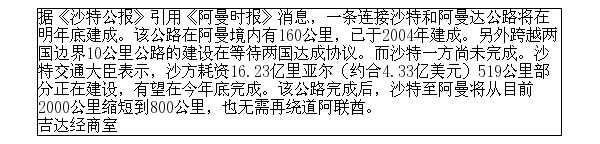 9CaKrnJC0Jq china.huanqiu.comzh-Hansarticle沙特-阿曼直达公路可将两国距离缩短1200公里该公路在阿曼境内有160公里,已于2004年建成。该公路完成后,沙特至阿曼将从目前2000公里缩短到800公里,也无需再绕道阿联酋。另外跨越两国边界10公里公路的建设在等待两国达成协议。据《沙特公报》引用《阿曼时报》消息,一条连接沙特和阿曼达公路将在明年底建成。沙特交通大臣表示,沙方耗资16.23亿里亚尔(约合4.33亿美元)519公里部分正在建设,有望在今年底完成。/e3pmh1nnq/e3prkassa/e3prkb0dq1377599895000责编:千帆沙特公报137759989500011[]{"email":"qianfan@huanqiu.com","name":"千帆"}