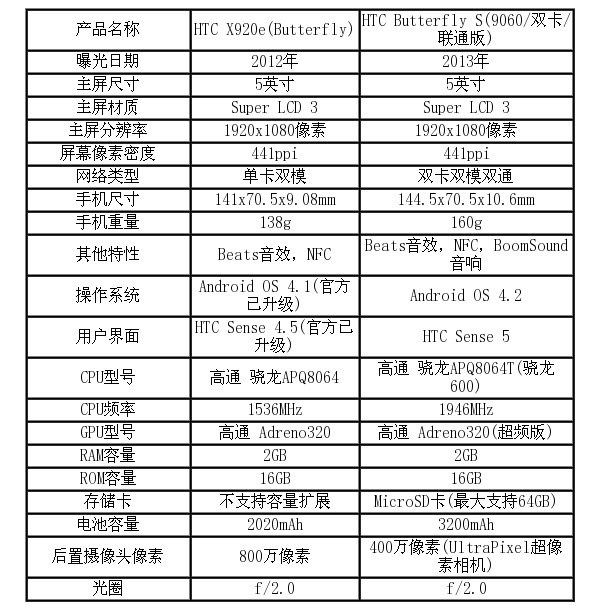 HTC Butterfly s在硬件方面也有着一定的提升,其 处理器由高通APQ8064提升至骁龙600,主频也提升为1.9GHz,并且集成的Adreno 320图形处理器也有一定的提升,在内存方面,该机采 用了2GB RAM+16GB ROM的组合,在性能方面也到了目前的旗舰水准。