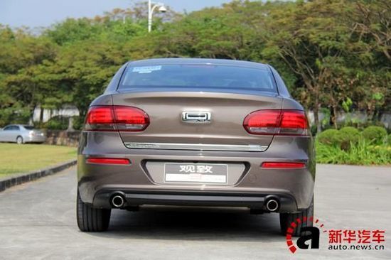 车尾的造型与大众车型十分相似,尾门中央是观致汽车的LOGO,镀铬装饰成为水平切割线条,而牌照框则置于底端。