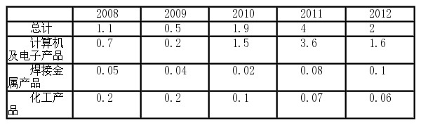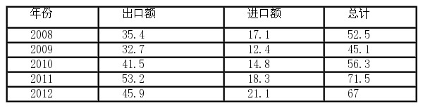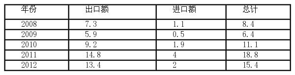 2008年-2012年阿州对华进出口额统计(单位:亿美元)