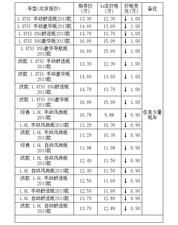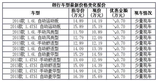 近日,编辑从上海大众授权经销商北京首汽汽车修理有限公司了解到,商家店内上海大众朗行少量现车销售,购车优惠7000元现金,感兴趣的朋友不妨详询经销商。详情见下表: