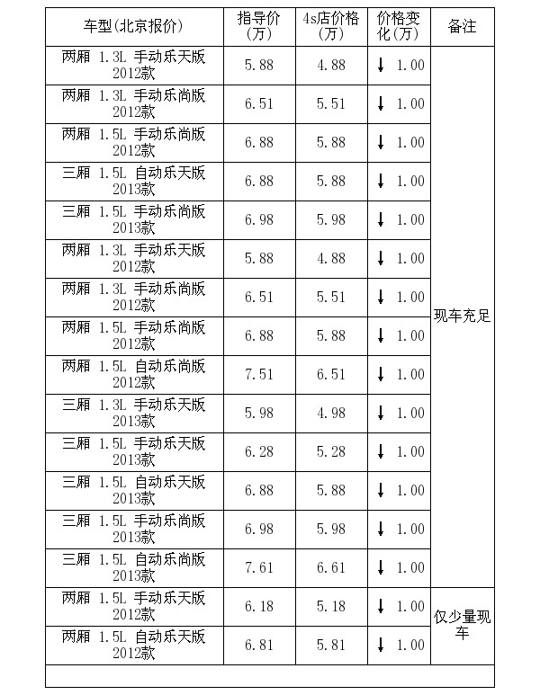 途安作为上海大众所推出的第一款紧凑型多动能轿车,填补了大众在这一领域的市场空白。目前在售的2013款上海大众途安全系均搭载一台1.4L涡轮增压发动机,共有9款车型可供选择,售价区间为14.98—21.18万元。近日,编辑从北京首汽汽修4S店获悉,新途安仅有少量现车,全系最高优惠1.6元,详情见下表: