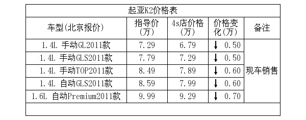 据4S店销售人员介绍,起亚K2目前有少量现车销售,近期购车最高可享受现金优惠7000元,惠后最低仅售6.79万元。、