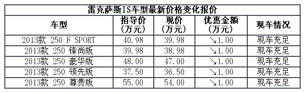 近日,编辑了解到,雷克萨斯IS现金优惠1万元,店内现车充足,颜色可选,有兴趣的不妨致电经销商详询,可获取更大优惠。