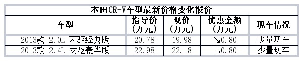 近日,编辑从广州获悉,目前购东风本田CR-V优惠8000元,少量现车。感兴趣的网友不妨致电当地经销商。