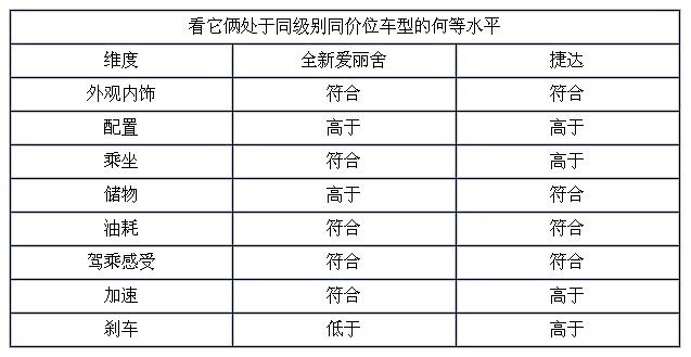 我们从3个平手的维度上看:在外观内饰、配置和驾乘感受上,它们的好坏是因人而异的。首先,年轻人可能更倾向于全新爱丽舍的外观内饰设计;配置方面,它的导航和倒车影像也是同级少有的;驾乘感受方面,全新爱丽舍开起来更简单,坐起来更舒服。这么看,选谁还不一定,如果要稳当,可以选获胜的捷达;如果喜欢全新爱丽舍的外型、导航、倒车影像和舒适的驾乘感受什么的,选它也是没问题的。