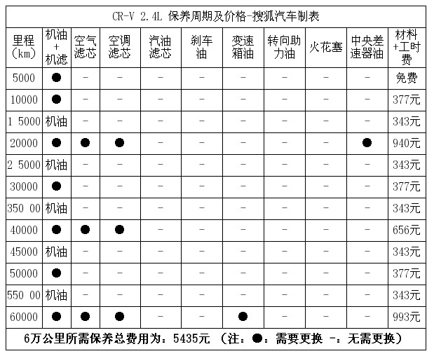 作为国内保有量较大的车型,本田CR-V在维护保养上也更为便利,6万公里所需保养总费用为5435元,较为经济的维护保养费用,也打消了用户养车的负担,值得那些注重实用的消费者选择。